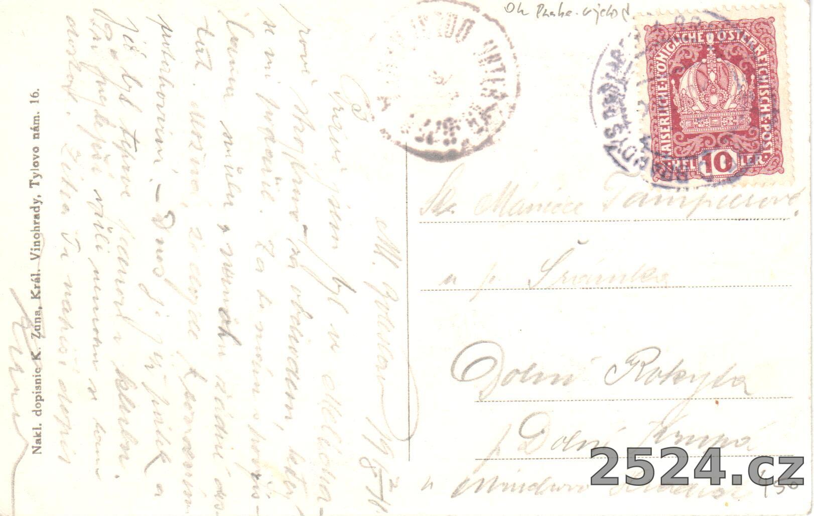 Vydavatel: Nakl. dopisnic K. Zuna Král. Vinohrady, Tylovo nám. 16