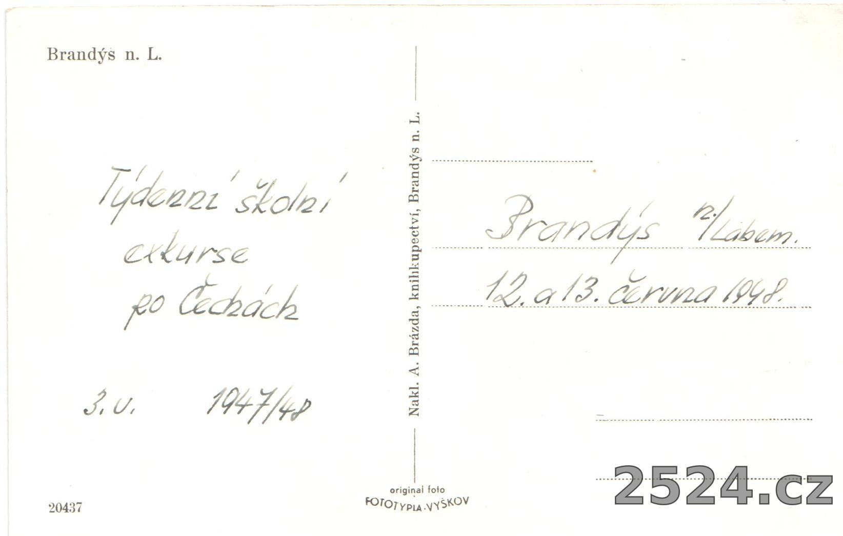 Popis: neprošlá; vepsaná poznámka Týdenní školní exkurse po Čechách 1947/48