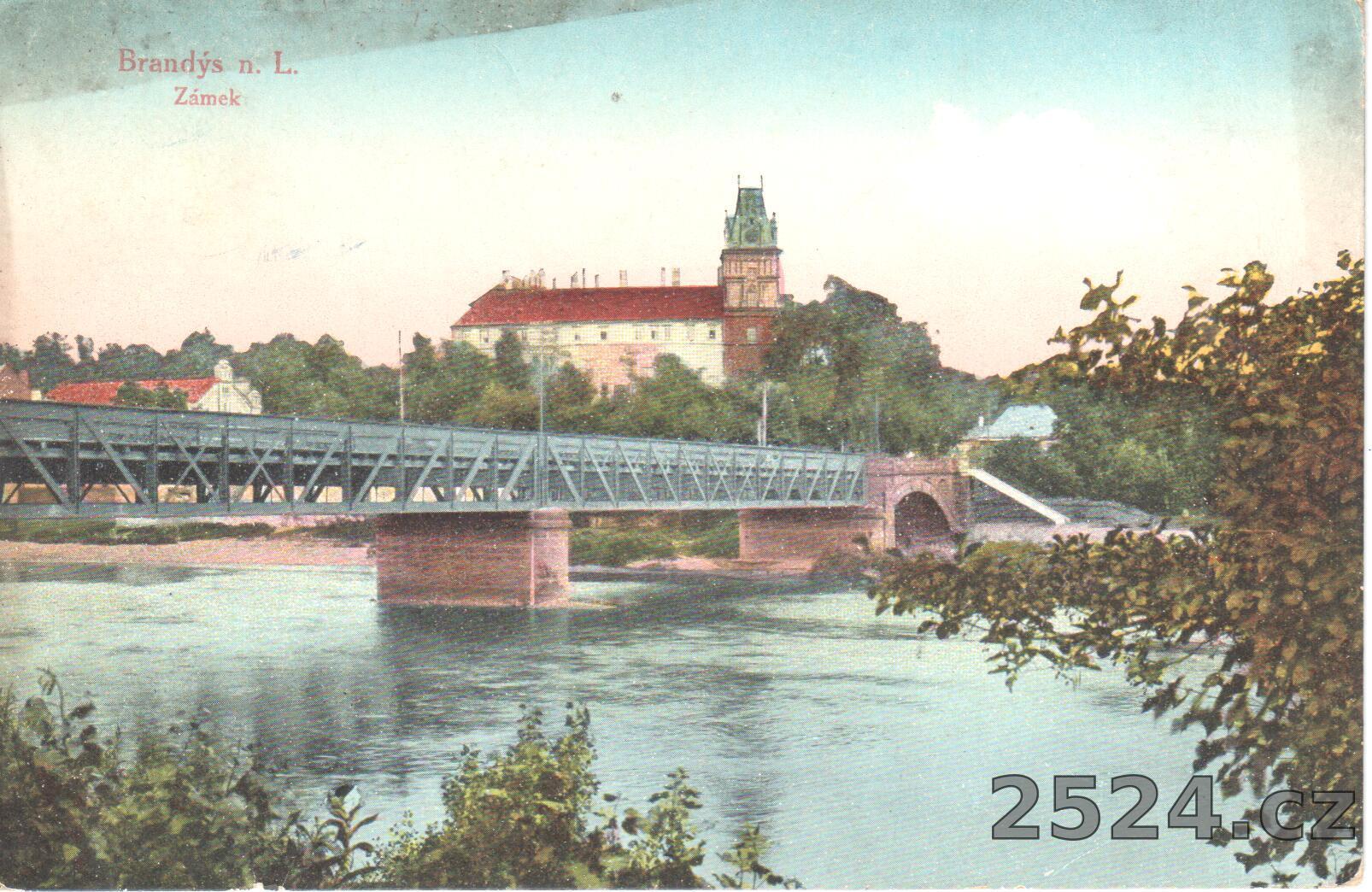 Popis: prošlá 1925; pohled na zámek přes Labe a železný most