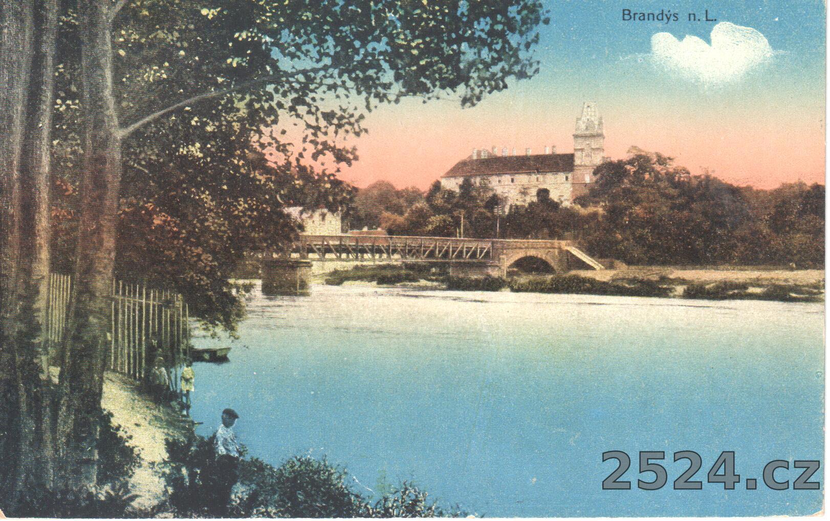 Popis: prošlá 1918; pohled na zámek přes Labe, kluci