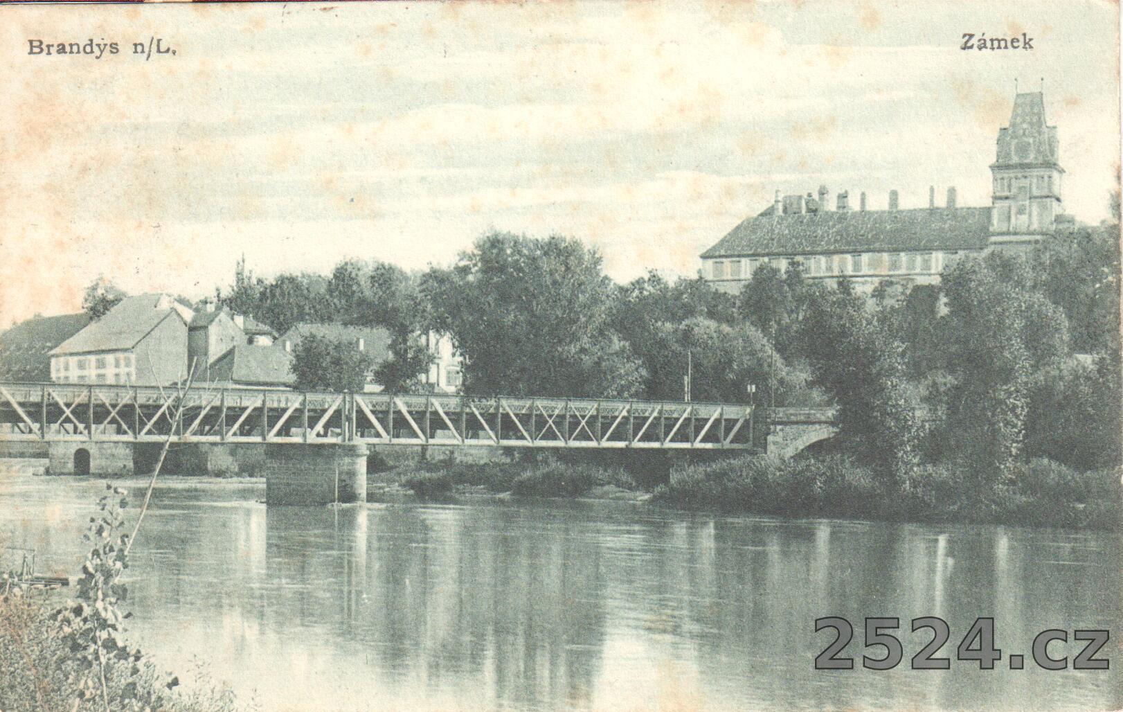 Popis: prošlá; pohled na zámek přes Labe a železný most