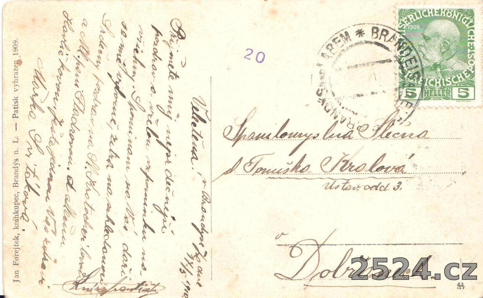 Vydavatel: Jan Forejtek, knihkupec, Brandýs n. L. - Patisk zakázán 1909